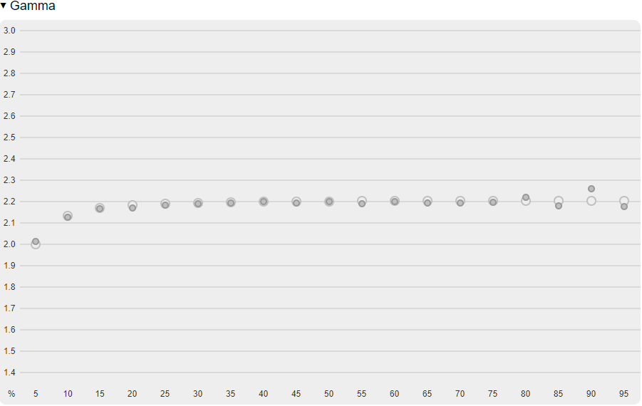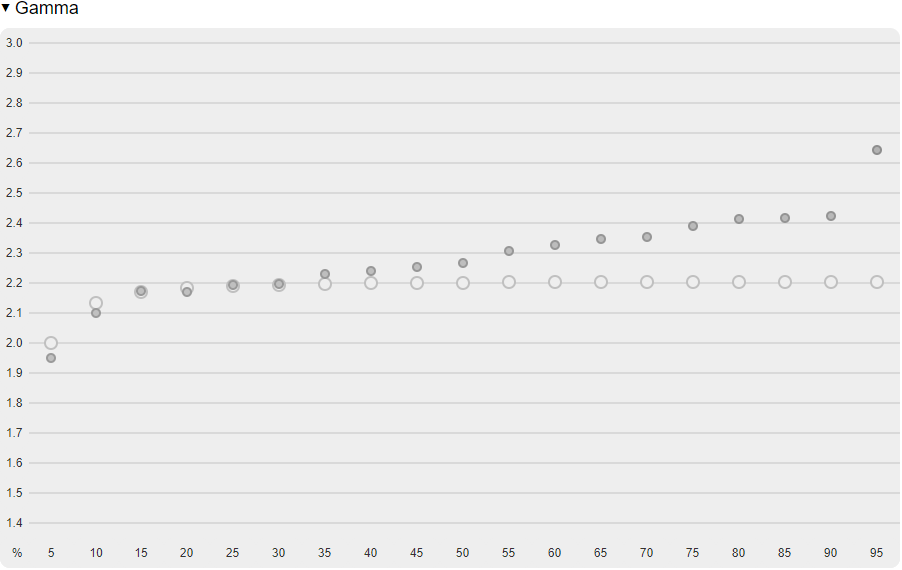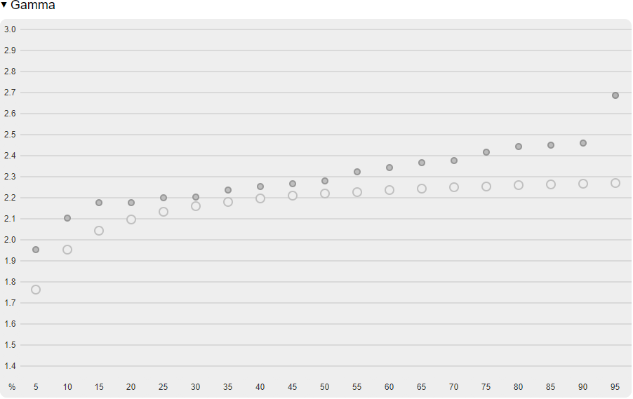 Color performance compared to DCI P3 is actually pretty good but gamma performance falls short here.