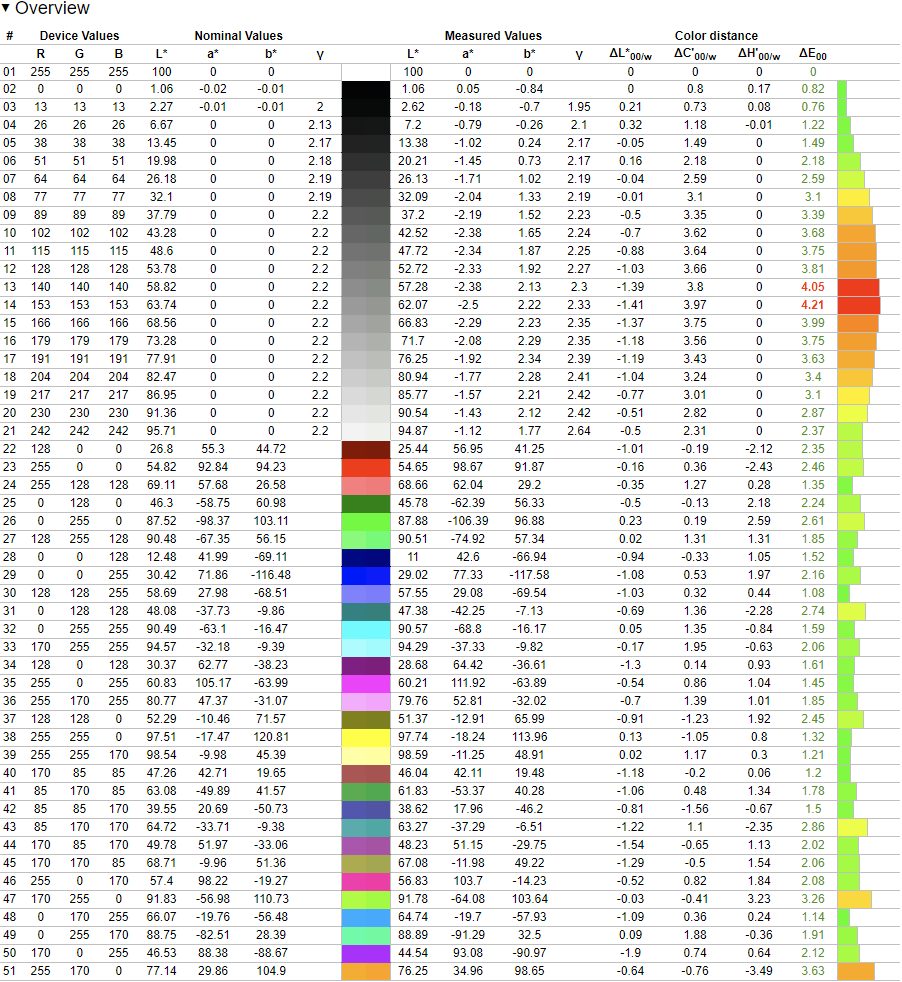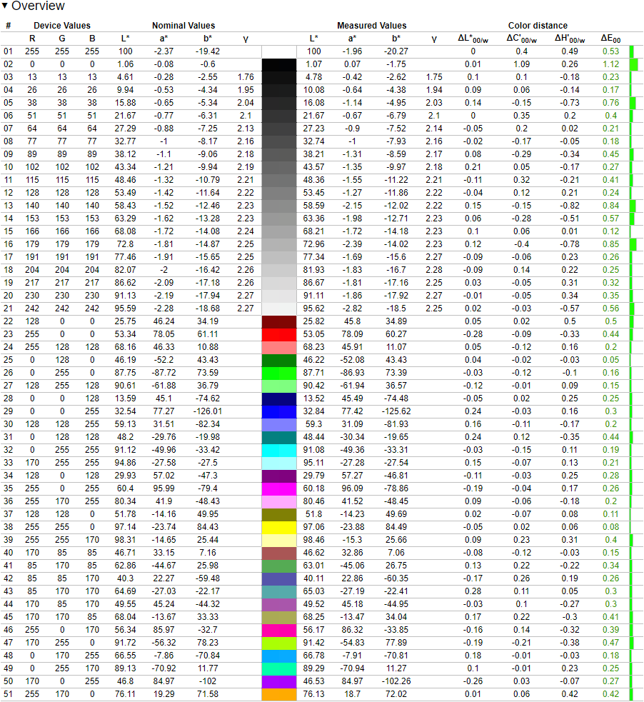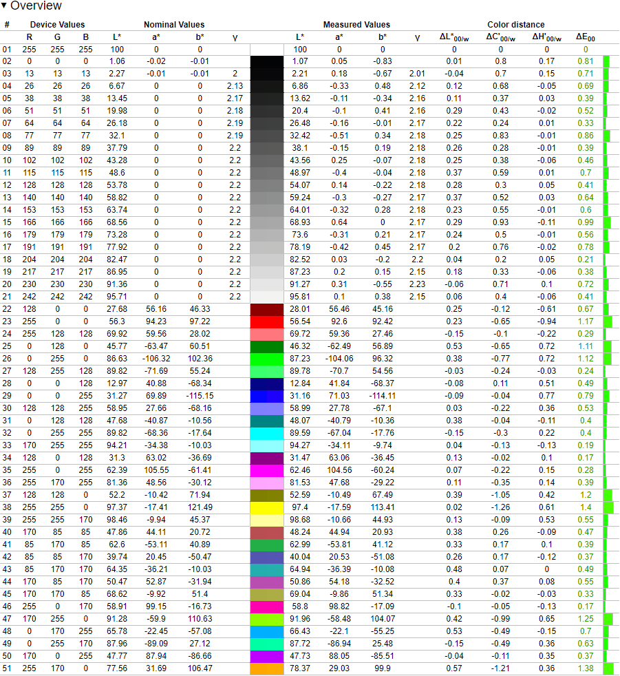 These results are excellent and anyone who has access to a calibration device should have a great experience with this monitor while doing color-critical work.