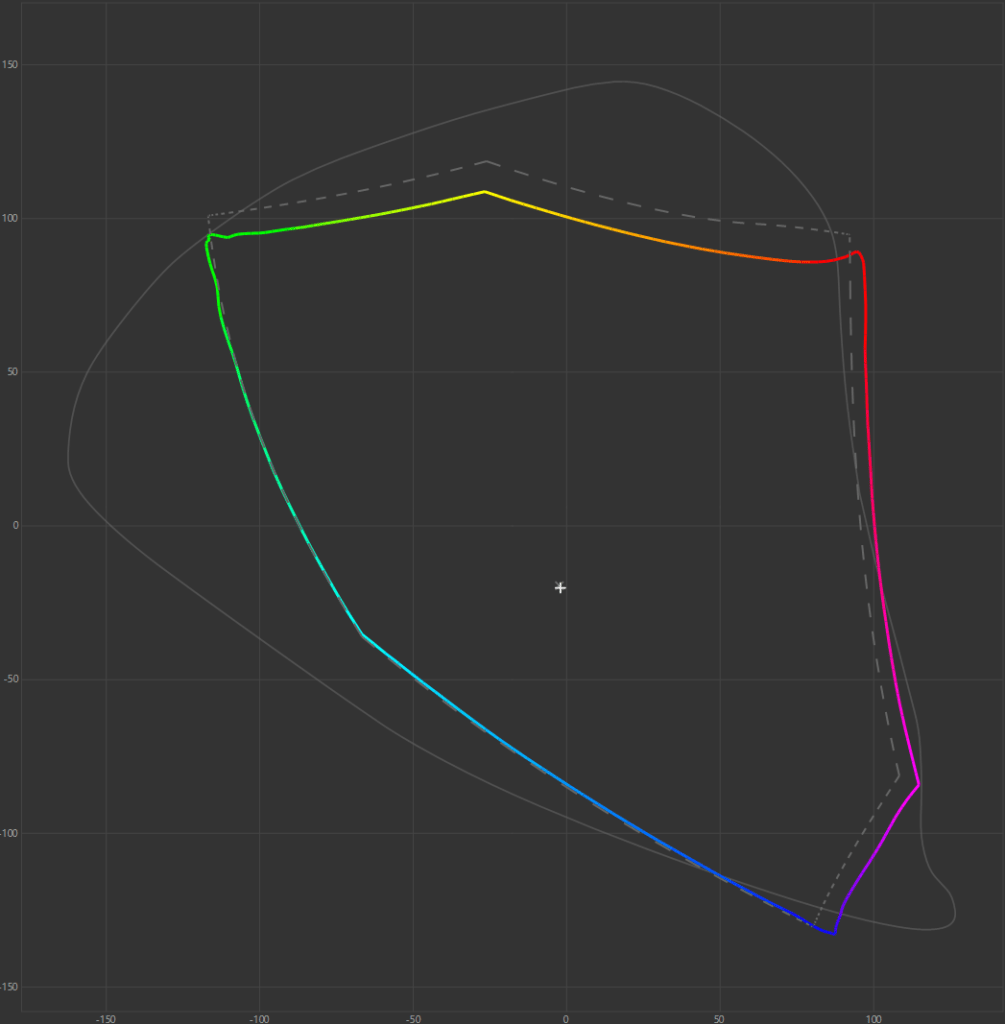 The green tint in the greyscale response has been corrected. Comparing the color gamut to sRGB shows that it’s easily capable of covering the entire gamut. Looking at DCI P3 shows that it can cover most of it’s gamut but that it lacks some saturation towards green and cyan. Adobe RGB is also covered pretty well here with slight under saturation in the reds and greens which results in slightly under-saturated yellows.